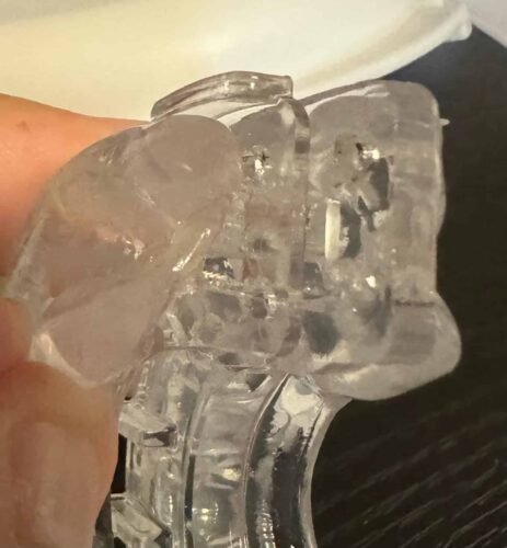 This worked well the first night, as in there is much less snoring on the recording on my phone. Let's see if it lasts the 6 months as advertised. I probably did leave the device in boiled water for too long because the bottom mold is starting to melt off the device (as seen in 1st pic) but overall the device looks really good after molding for $40.