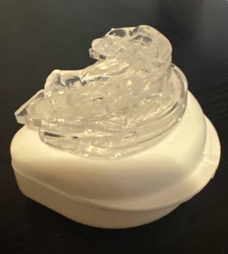 This worked well the first night, as in there is much less snoring on the recording on my phone. Let's see if it lasts the 6 months as advertised. I probably did leave the device in boiled water for too long because the bottom mold is starting to melt off the device (as seen in 1st pic) but overall the device looks really good after molding for $40.