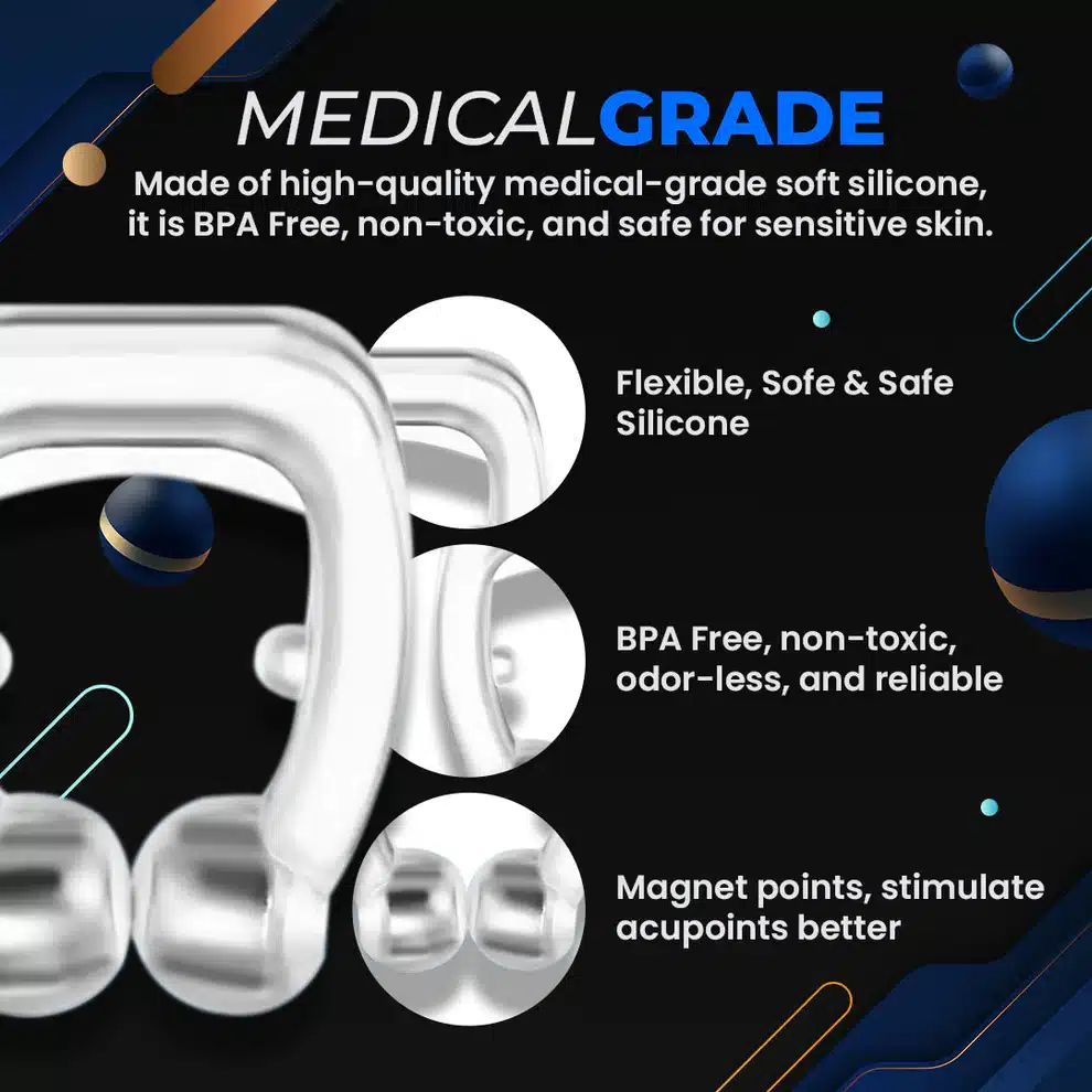 Some people think that putting something into their nose will feel uncomfortable, and will stop them from falling asleep as easily. This isn’t the case. NoSnore™ is not intrusive and fits comfortably in your nose. Because of the therapeutic magnets, it won’t fall out and will stimulate the sensory nerves which can lead to a peaceful nights rest. The silicone is of high quality and is nontoxic. Its soft texture means it is not intrusive and after a single use, you will barely know it is there.