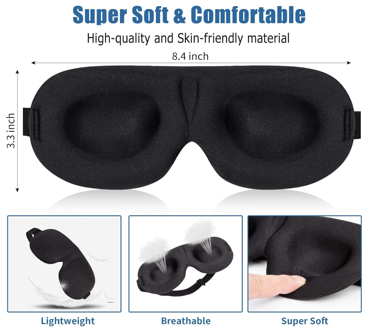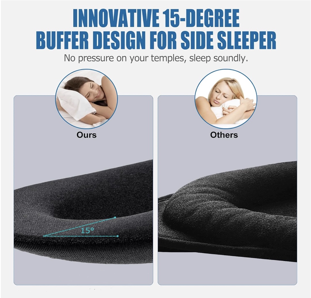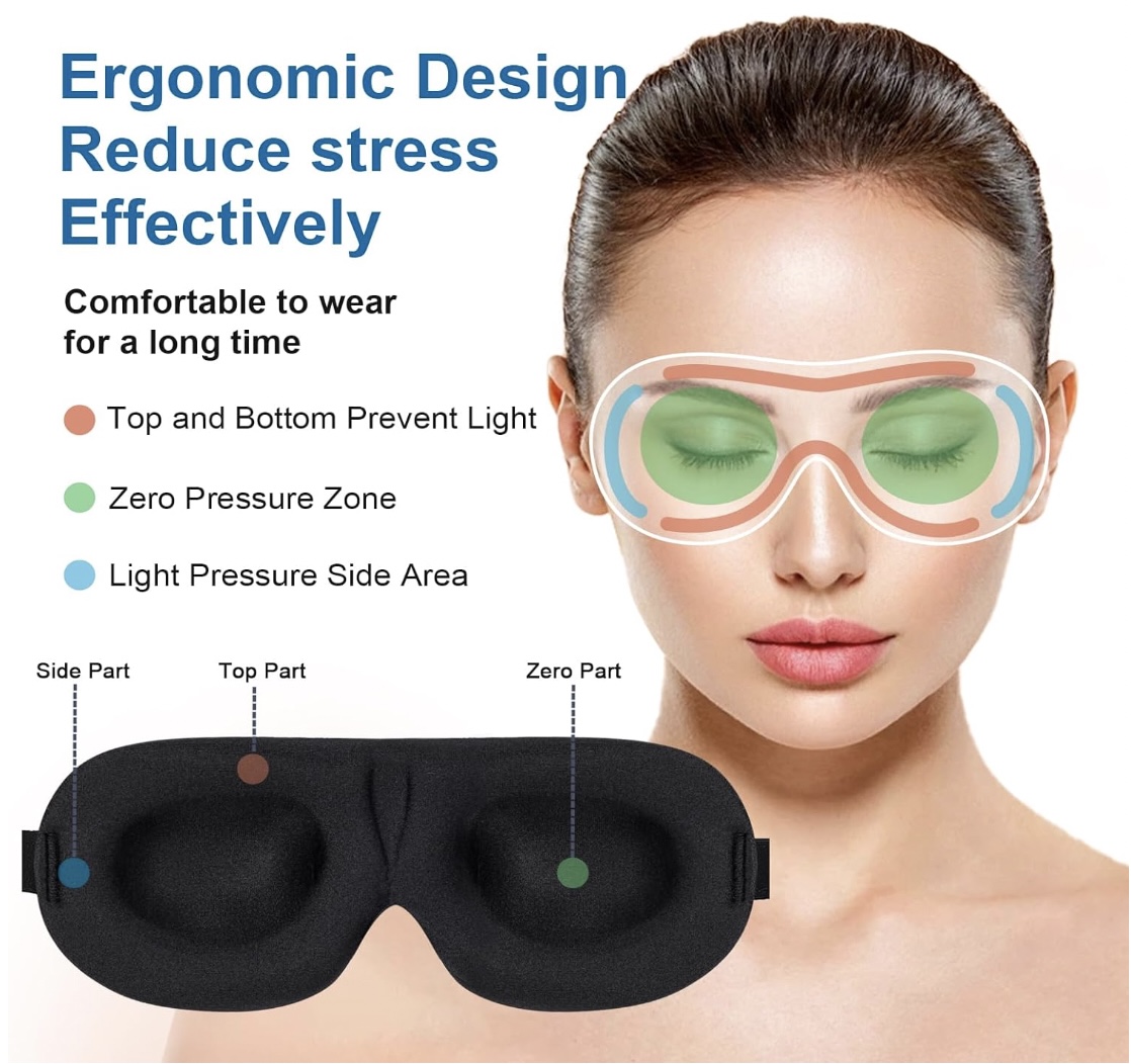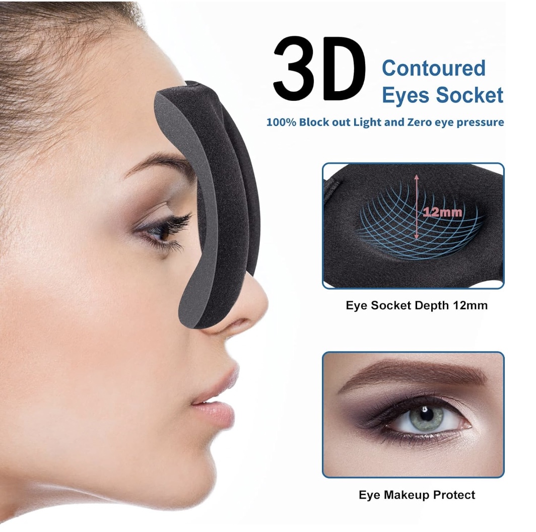 - 100% Blackout: Our unique 3D contoured design prevents any light from disturbing your sleep. Its protective curve creates effective space without touching your eyelids or eye makeup, and it applies no pressure on your eyeballs, allowing you to open your eyes freely.