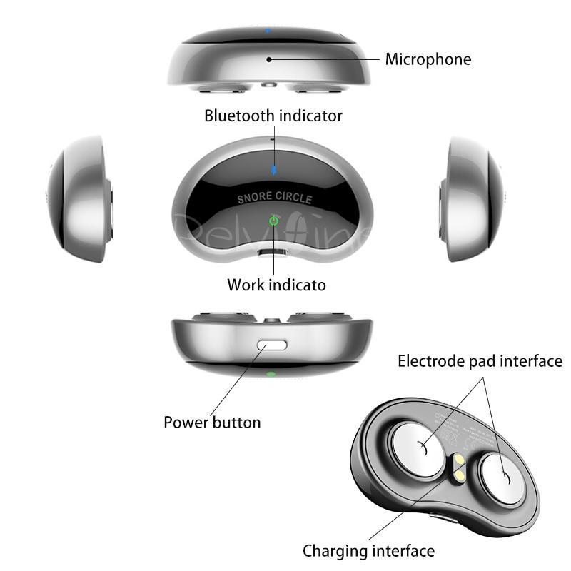 SnorePod™ uses EMS Technology. The device will automatically detect snoring during sleep using built-in sensors. The device will then use electrical muscle stimulation (EMS) to stimulate the throat muscles.