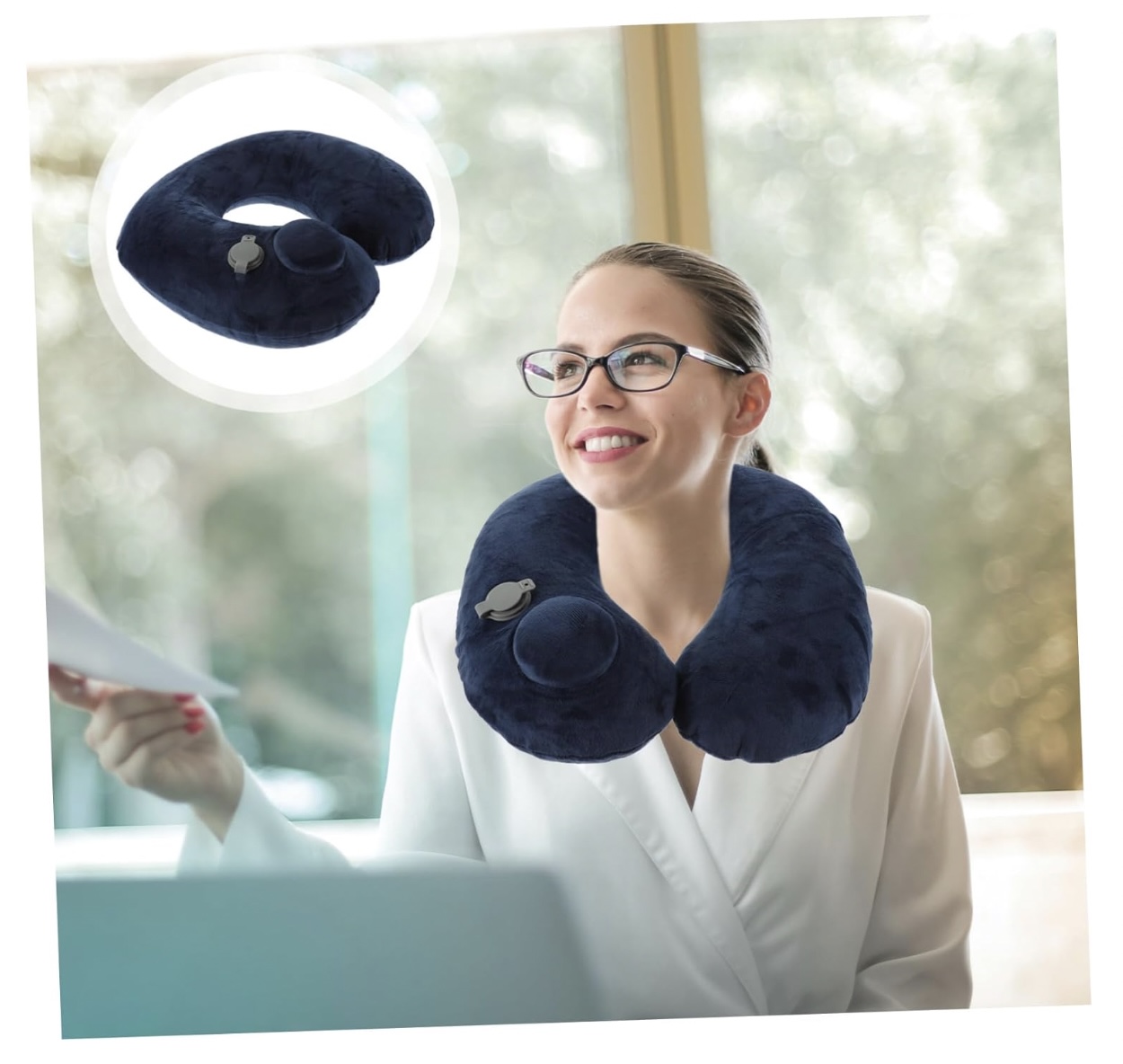 Our U-shaped travel pillow is a special pillow designed for use during airplane travel. It’s easy to use because you can quickly inflate and deflate it. To inflate it, you just open the seal and press the button a few times until it’s as full as you like.
