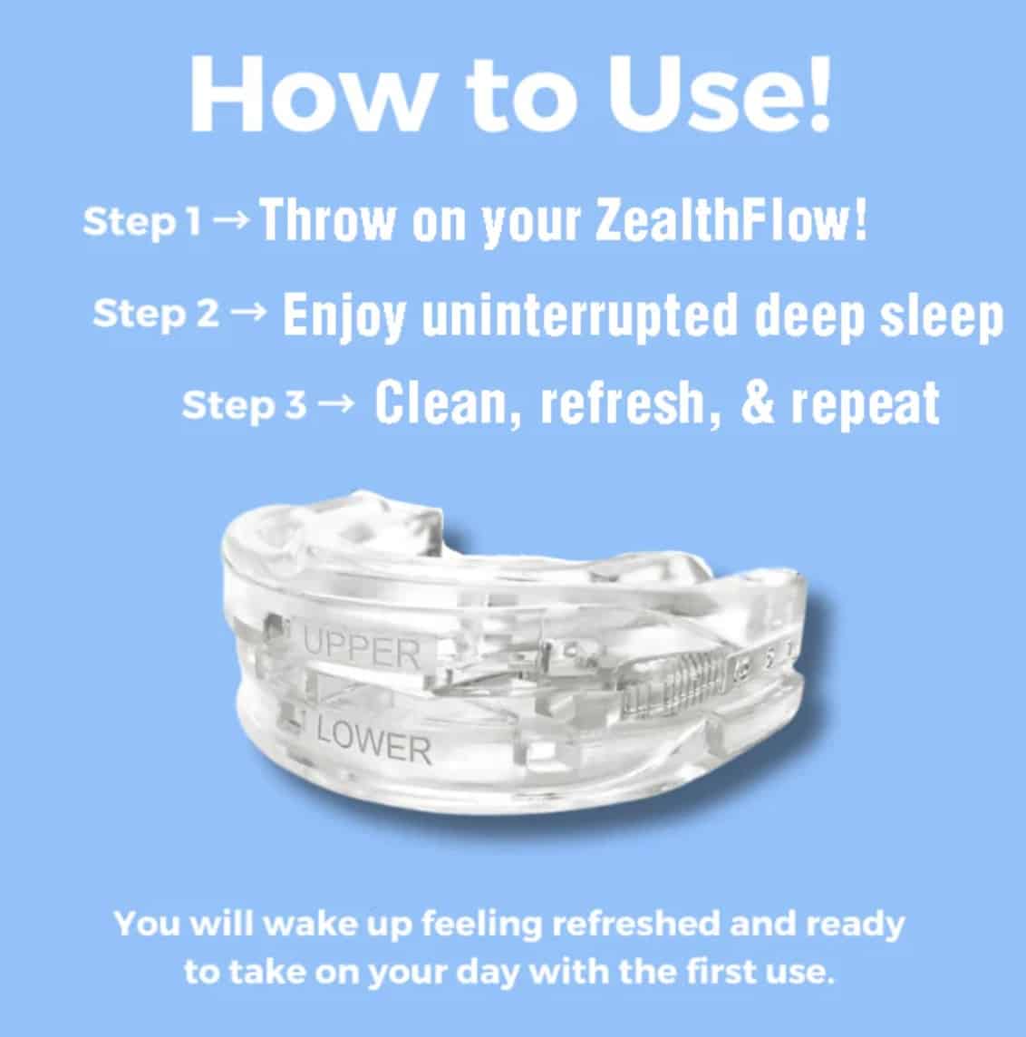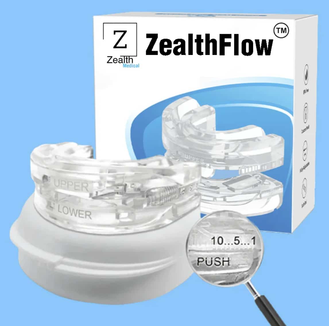 ZealthFlow™ works by addressing the root cause of sleep apnea: the excessive relaxation of throat muscles during sleep, which leads to airway blockage. The mouthpiece gently positions the jaw forward into an optimal sleep position, thereby widening the airway and ensuring better oxygen flow. This prevents the collapse of muscles at the back of the throat, reducing snoring and the interruptions in breathing that characterize sleep apnea. By using ZealthFlow™, users can experience uninterrupted, restful sleep and wake up feeling refreshed and energized.